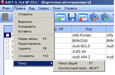 Выбор пункта Правка позволяет перейти к режимам ввода, удаления и редактирования полей, картотек, справочников и других документов. Здесь же можно перейти к режиму общего и контекстного поиска.