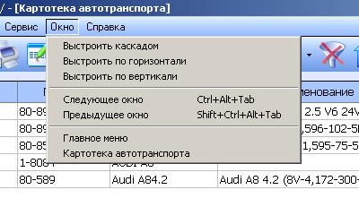 Выбор пункта Окно позволяет настроить расположение открытых окон в системе, осуществить переход к выбранному окну.